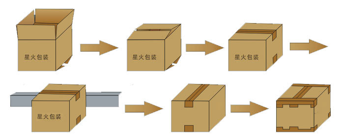 本套封箱機的封箱流程如下:
